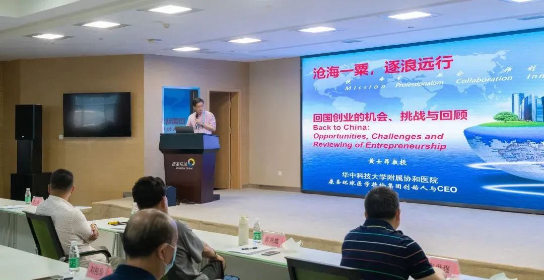 随后,黄士昂教授为参会企业家做了一场精彩绝伦的演讲。从作为学科专家,走出体制自主创业,定位专科特检技术创立康圣达,到完成企业融资,实现稳健发展,再到港交所主板成功上市,成为“临床特检第一股”,黄教授强调自己要做一个具有科学精神的企业家,企业存在的目的就是获取利益,科学的存在就是不断突破,发展研究。